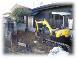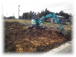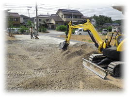 ユンボでの整地作業